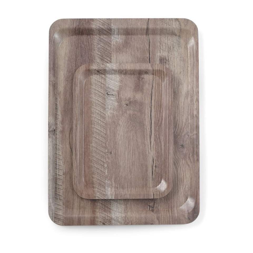 Vassoio di Servizio AmerBox in Melamina con Stampa Effetto Legno Scuro 370x530mm, Elegante Texture Legnosa per Uso Domestico o Commerciale
