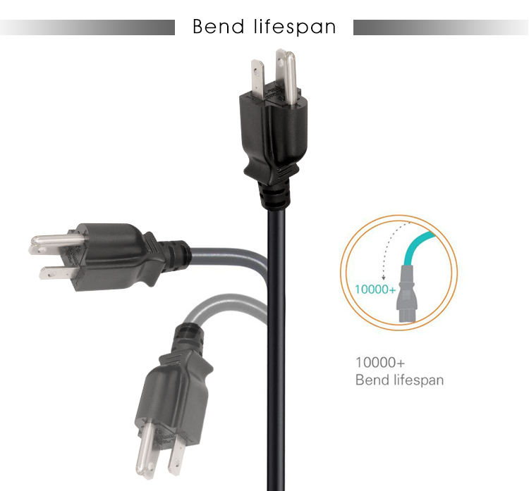 Cavo di Alimentazione Americano a 3 Poli 110V con Terminale Aperto, Cavo di Alimentazione a Tre Pin