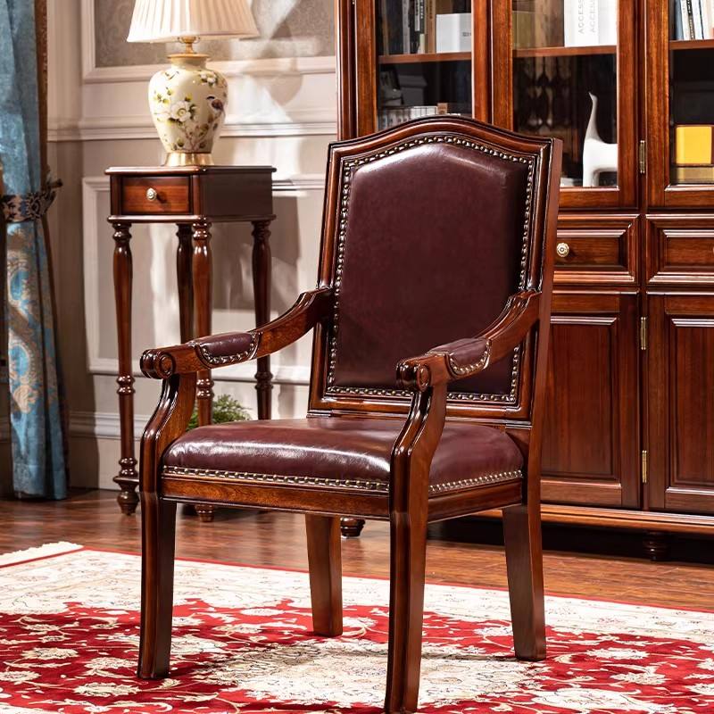 Set Scrivania in Legno Massello Stile Country Americano - Poltrona in Pelle per Ufficio Domestico Studio