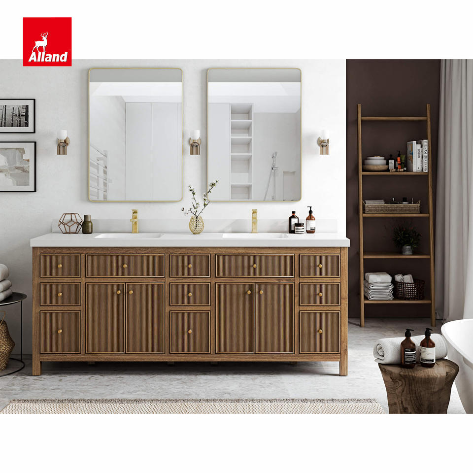 American Face Frame a filo in rovere bianco pannello scanalato mobiletto del bagno con lavandino sotto montato vendita direttamente dalla fabbrica