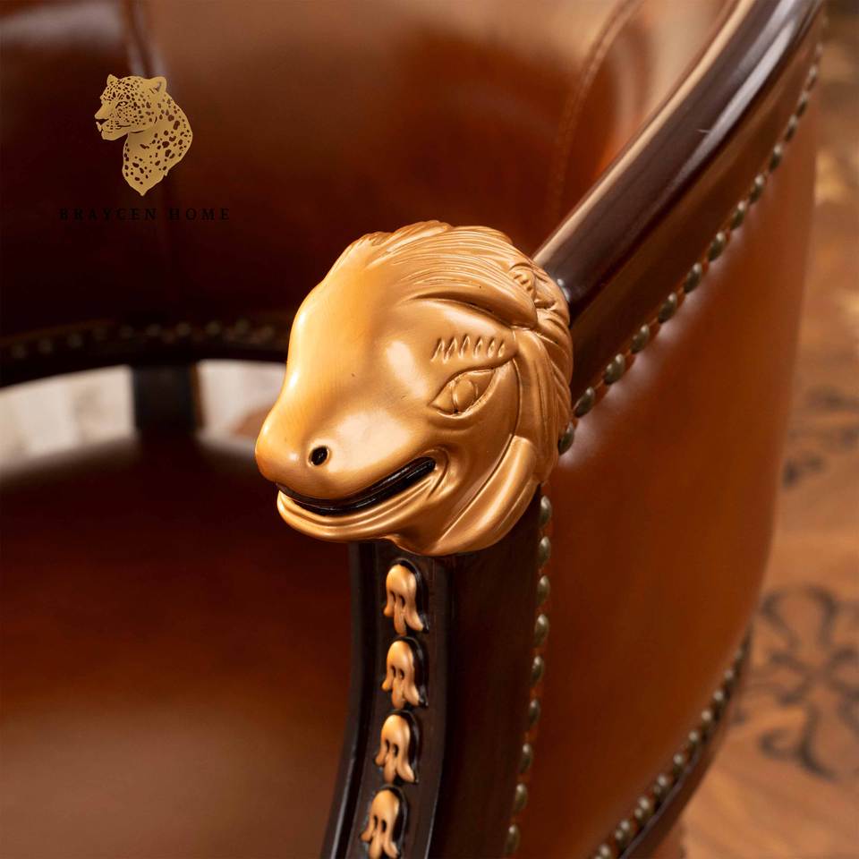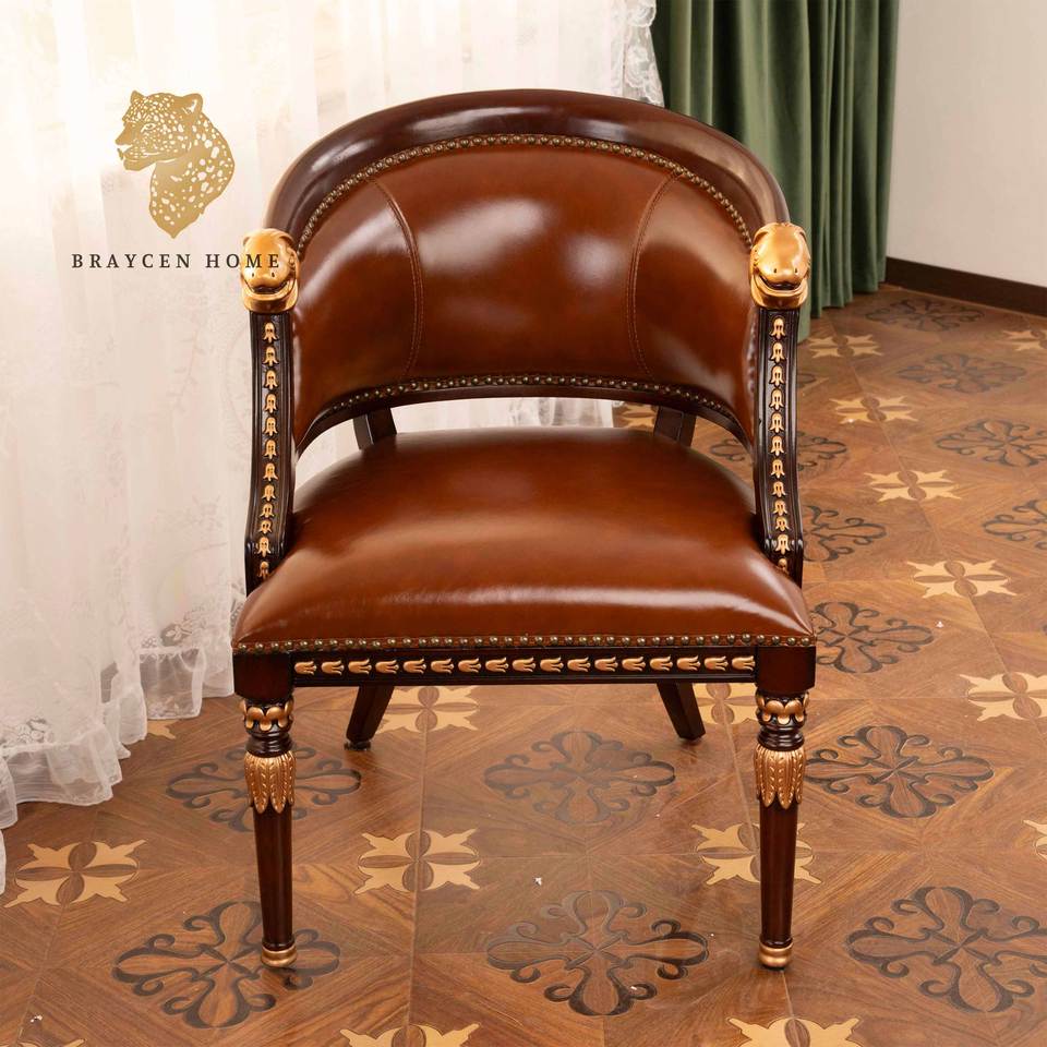 American Luxury Leather Sofa Chair Classic Modern Wood Chair for Home Office Armchairs Dining Bedroom Hotel or Villa Furniture
