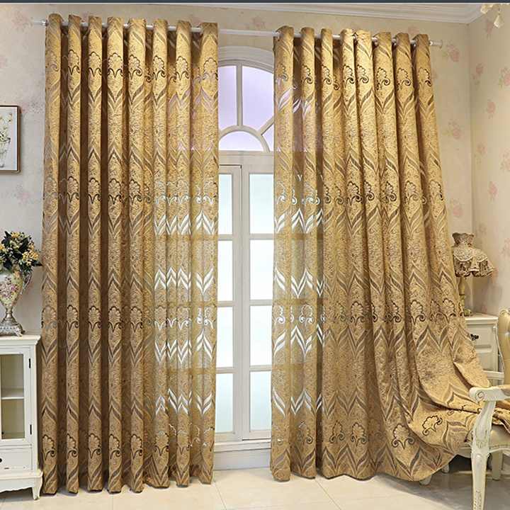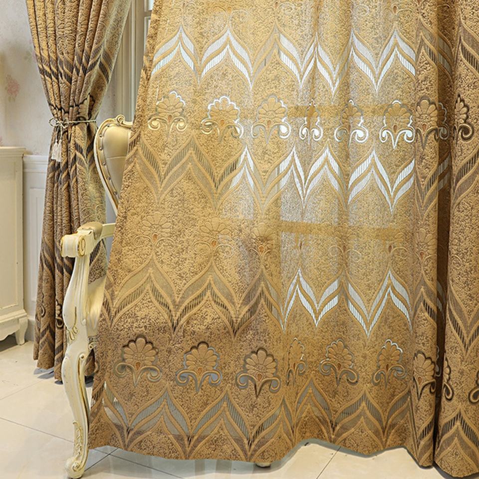 Tenda Americana Moderna con Occhielli, Geometrica in Velluto Jacquard e Tulle, Spedizione Rapida, Colore Caffè, Nuovo Design per Arredamento Casa