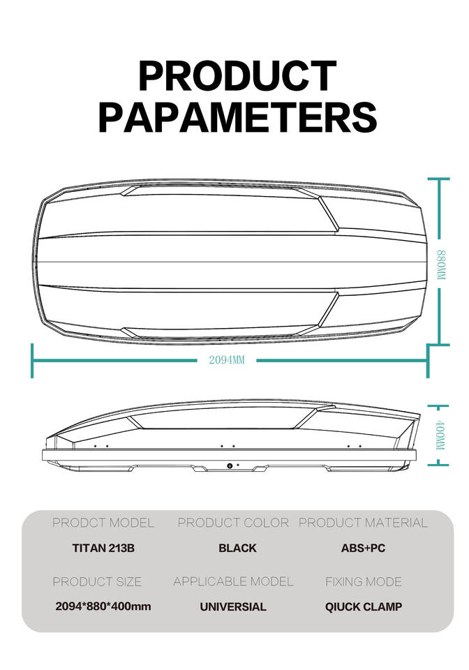 Box da Tetto Sportivo Americano ROAHTRIP XC186A in ABS+PC con Apertura Bilaterale Rapida, Capacità 300L-400L con Striscia Sigillante