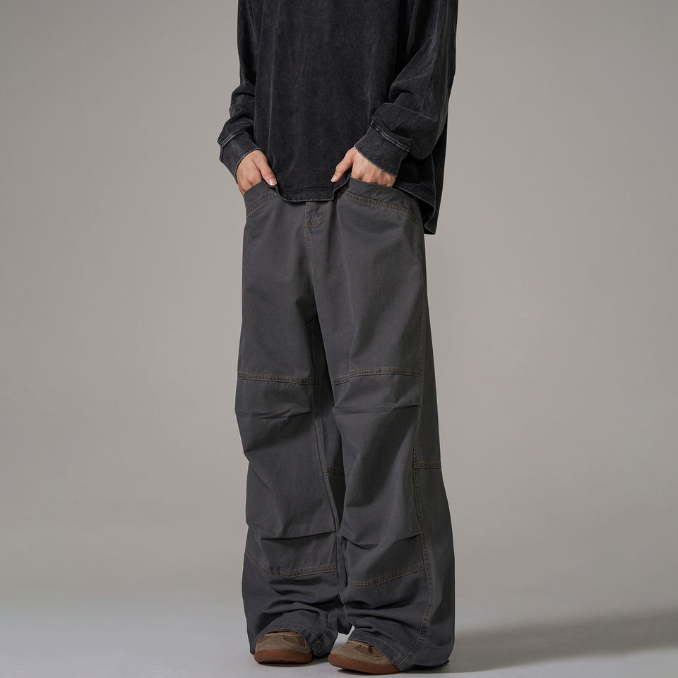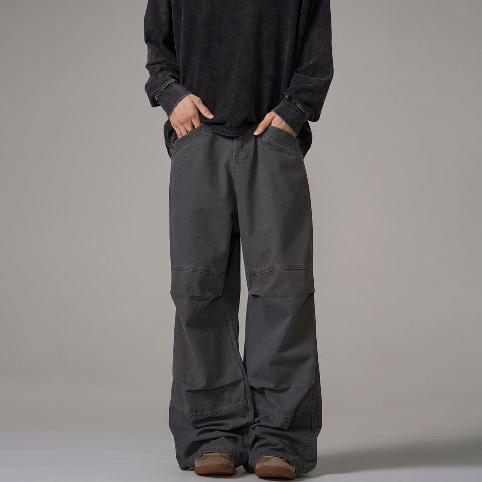 American Retro Distressed Loose Casual Canvas Cargo Pants Men's Trendy Brand Pleated Design Straight Wide-Leg Trousers