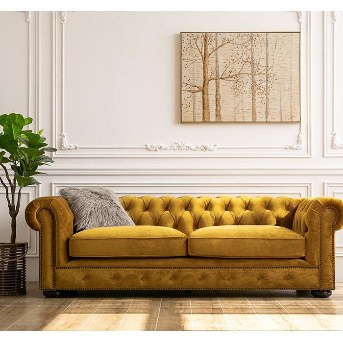 Set divano a tre posti pastorale retrò americano Design semplice in velluto verde scuro bottoni per piccole palestre