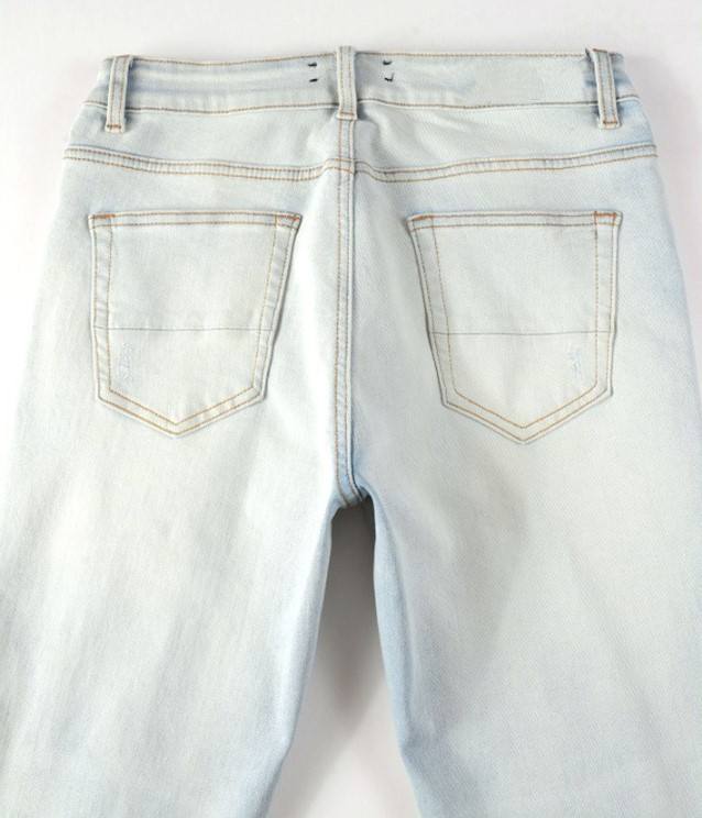 Jeans Skinny Strappati da Uomo Stile Retrò Americano, Lavaggio Azzurro Chiaro, Moda Streetwear, Alta Qualità, Jeans Designer Personalizzati