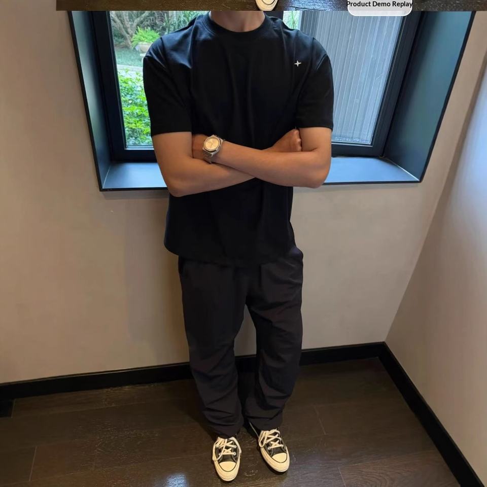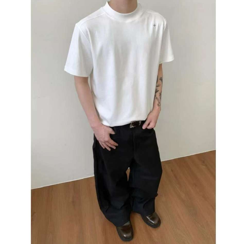 T-shirt a maniche corte in tinta unita con ricamo Polaris della serie American Retro Main Line - Modello spesso da spalla - 240g Sorona Cool-Feel