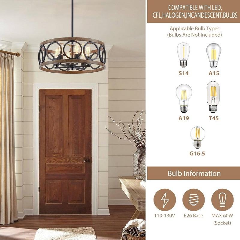 American Retro Modern Farmhouse Pendant Light Black Wood Grain Metal Chandelier for Kitchen Bedroom Restaurant Lighting Middle