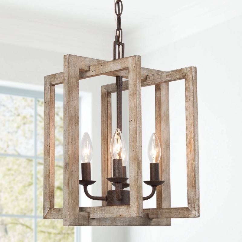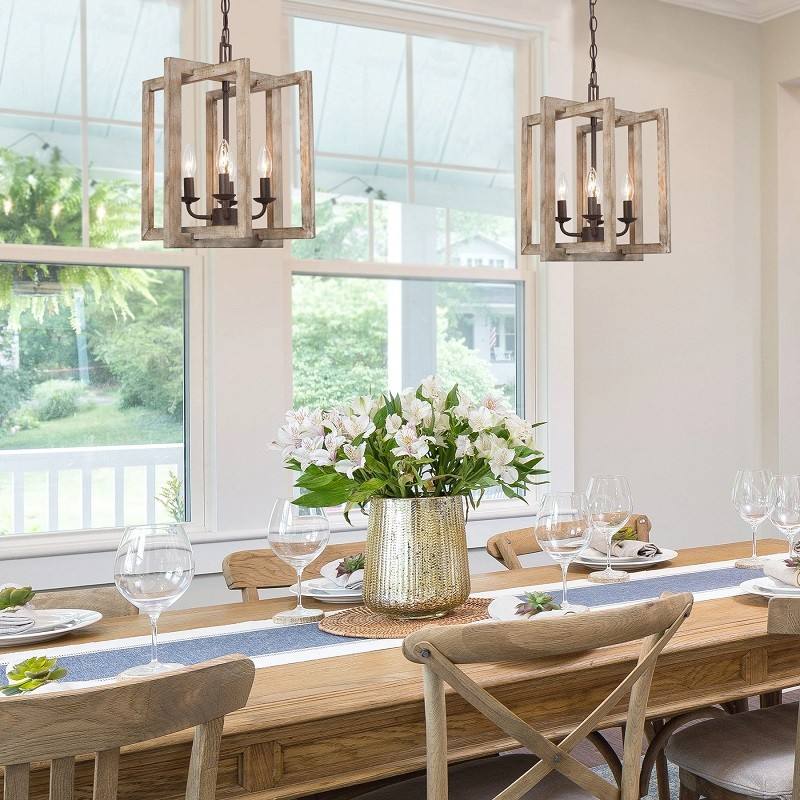 Lampadario Rustico Americano Retrò, Lampada a Sospensione Quadrata in Ferro Battuto e Legno per Sala da Pranzo