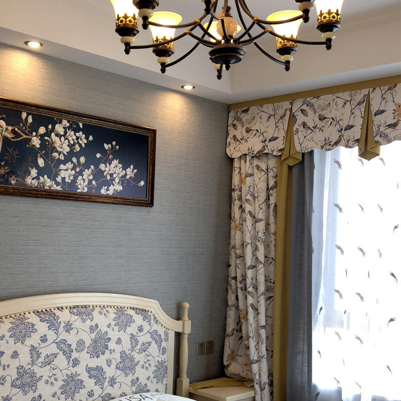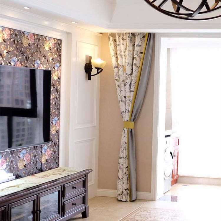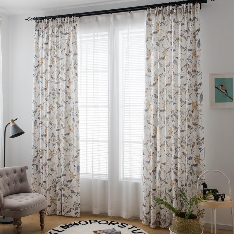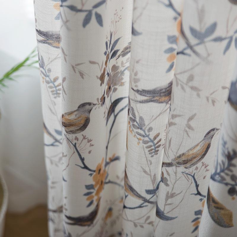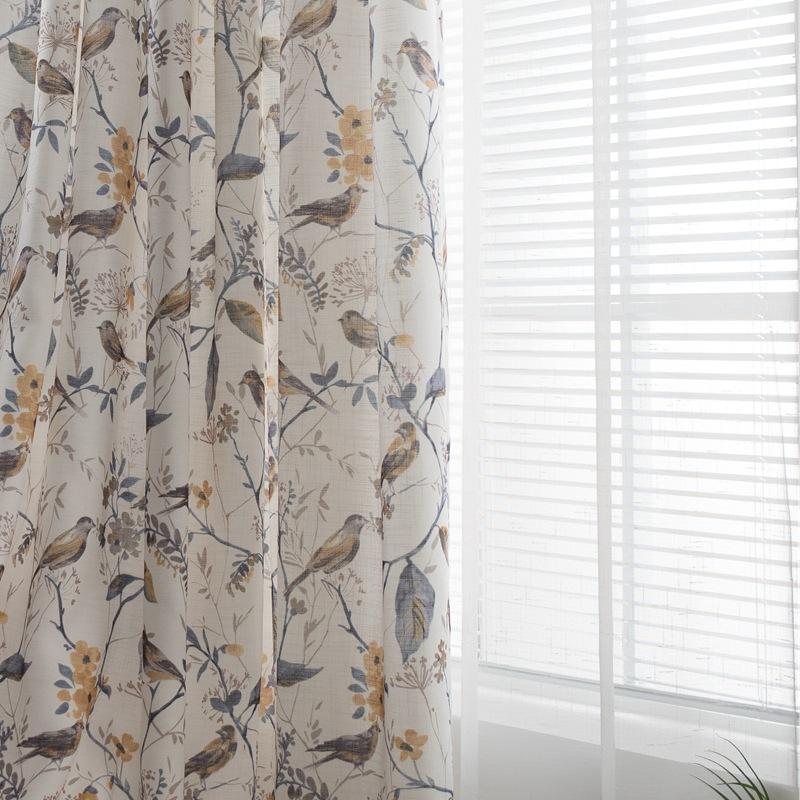 Tende Stampate con Motivo di Uccelli in Stile Americano, Texture di Lino per Camera da Letto