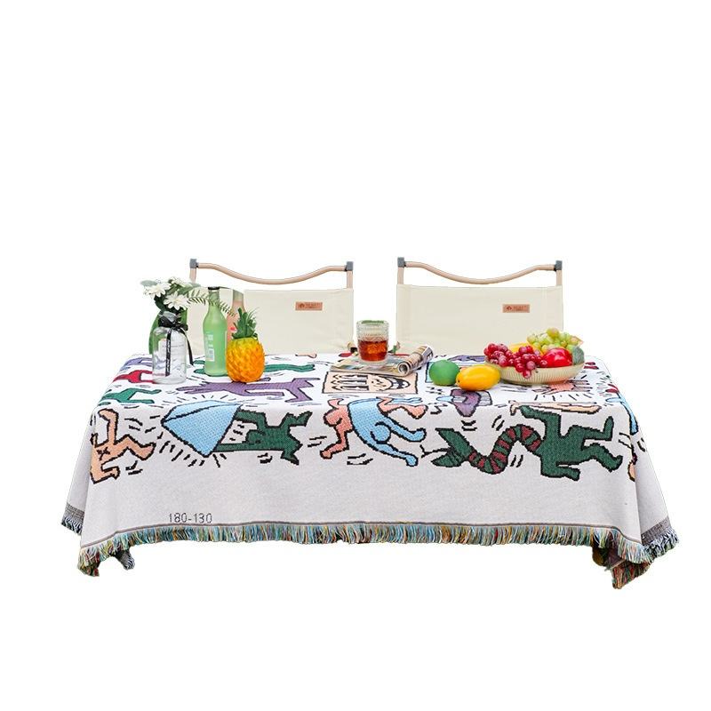 American Style Graffiti Moisture-Proof Tablecloth Thickened Cotton Linen Fabric for Outdoor Picnics Parties Square Patterned