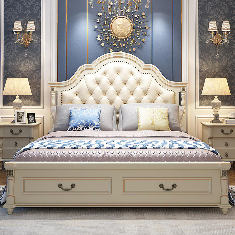 Letto Matrimoniale in Legno di Pino Massiccio Stile Europeo di Lusso, 1,8 Metri, Design Moderno Minimalista con Contenitore, Letto Nuziale