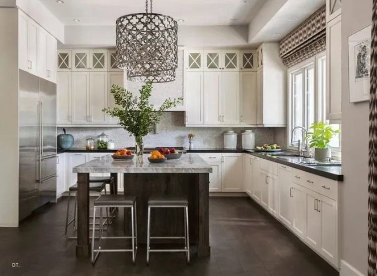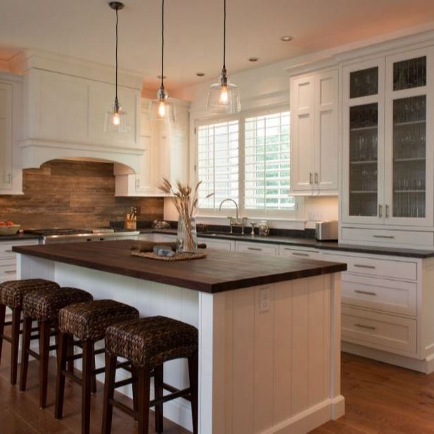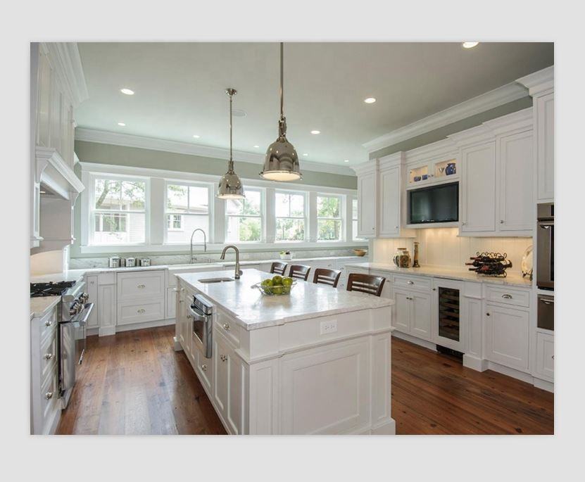 American Style Modern Solid Wood Custom Made White Painting Kitchen Furniture with Island and Bench Top