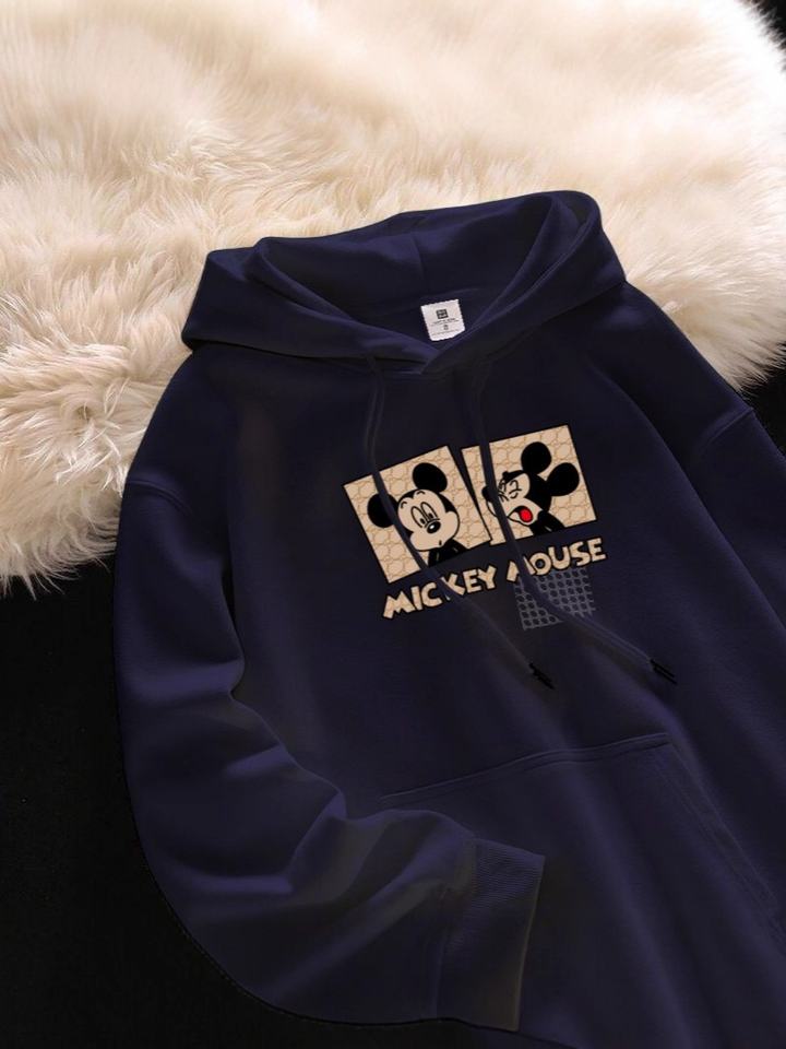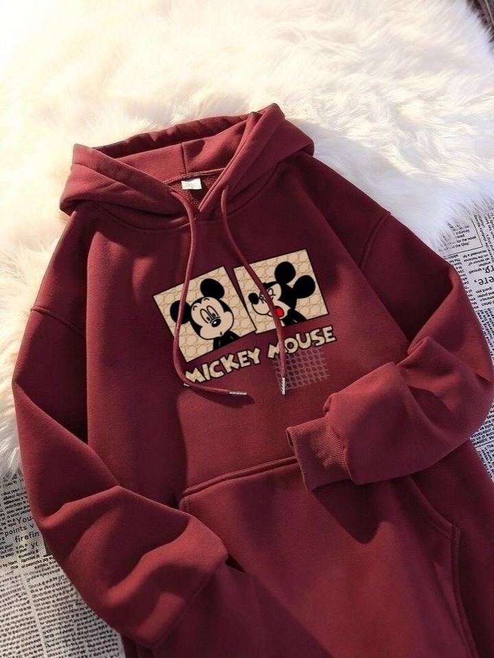 Felpa in Pile Stile Americano Retrò con Stampa Cartoon Mickey, Colletto con Bottoni, Autunno Inverno, Stile Comodo e Spesso per Donna