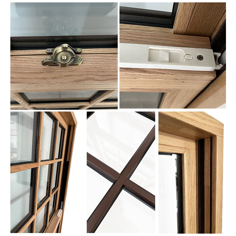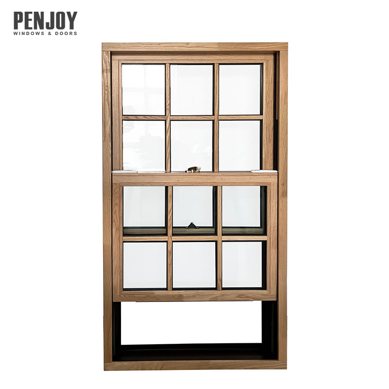 Finestre scorrevoli in legno stile americano a ghigliottina singola per esterni, applicazione rustica, in alluminio e legno