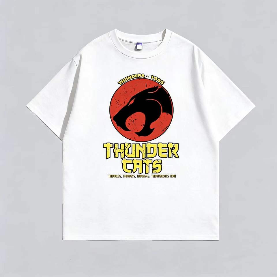 American Vintage Heavyweight Cotton Short Sleeve T-Shirt, Loose Fit, Round Neck, Thundercats 1985, Trendy and Versatile