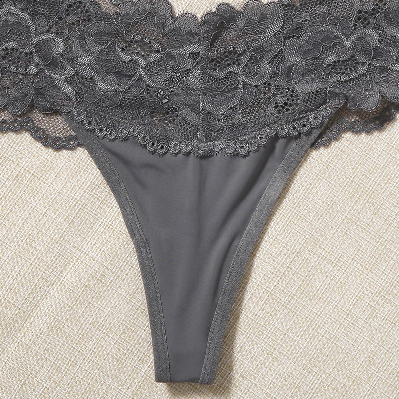 American Women's Sexy Transparent Lace Panties Everyday Fashion Thong Underwear with Custom Model Thongs Plain Dyed Lingerie