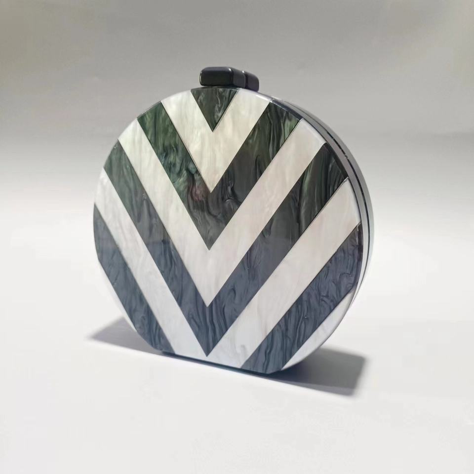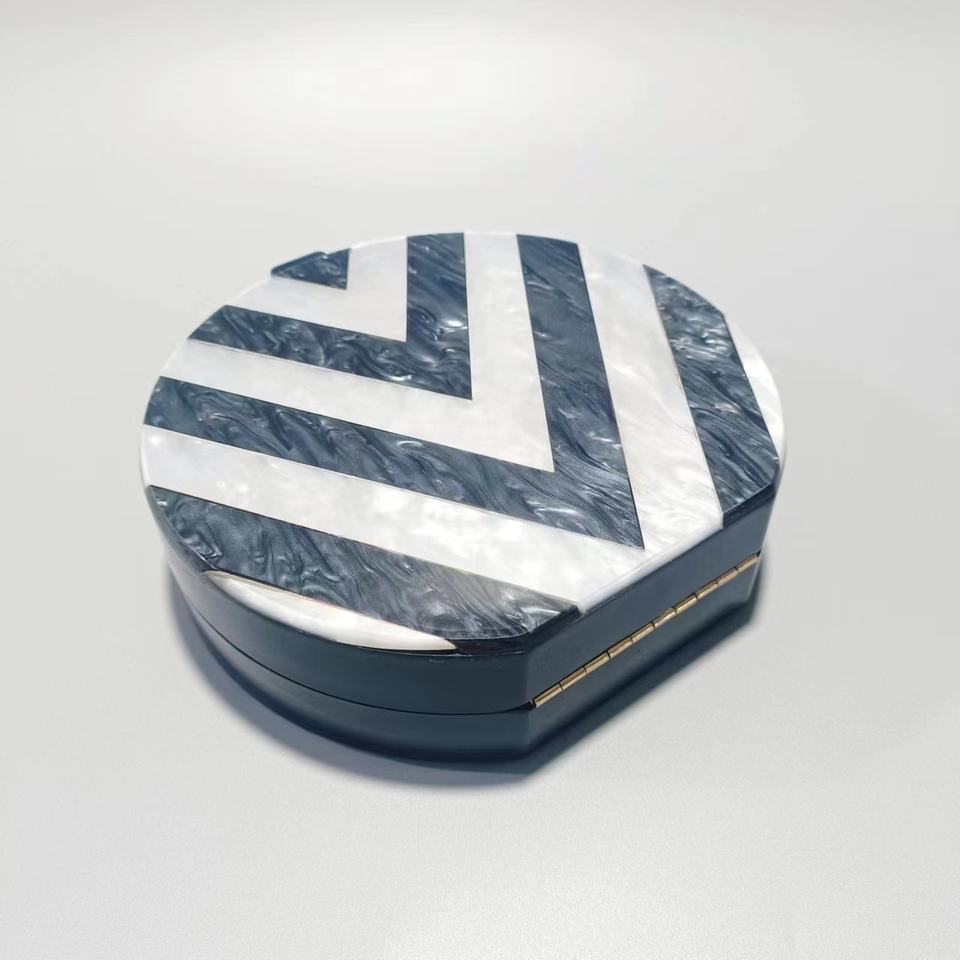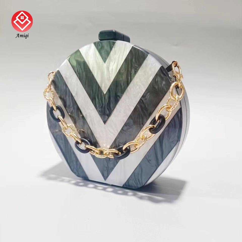 Amiqi YM38-29 Fashion busta a forma di scatola trasparente nero bianco borsa da donna personalizzata borsa da sera rotonda pochette acrilica