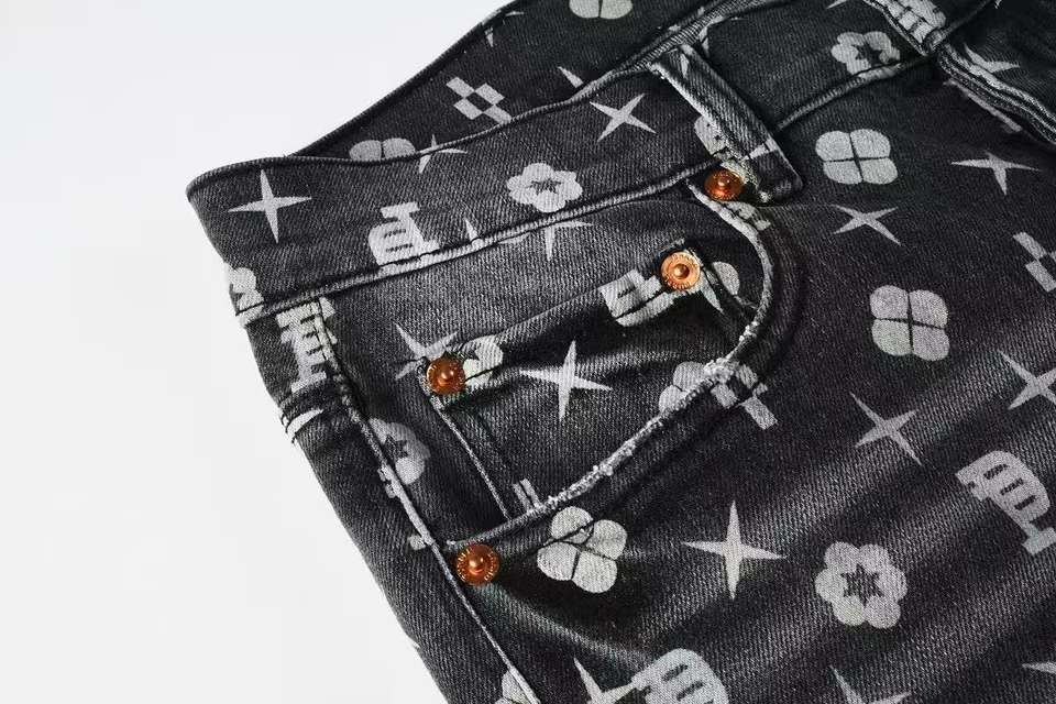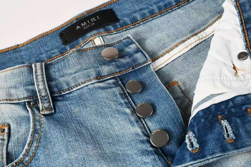 Jeans da Uomo Amiris Stile Retrò Europeo-Americano, Elasticizzati, Slim Fit, con Strappi e Toppe, Vita Media, in Denim per l'Autunno