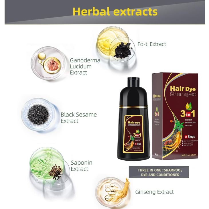 Shampoo per Capelli a Base di Erbe Senza Ammoniaca in Forma di Crema Olio Schiumosa - Flaconi da 200ml e 500ml per Uso Domestico e Professionale, Tinta Permanente di Alta Qualità