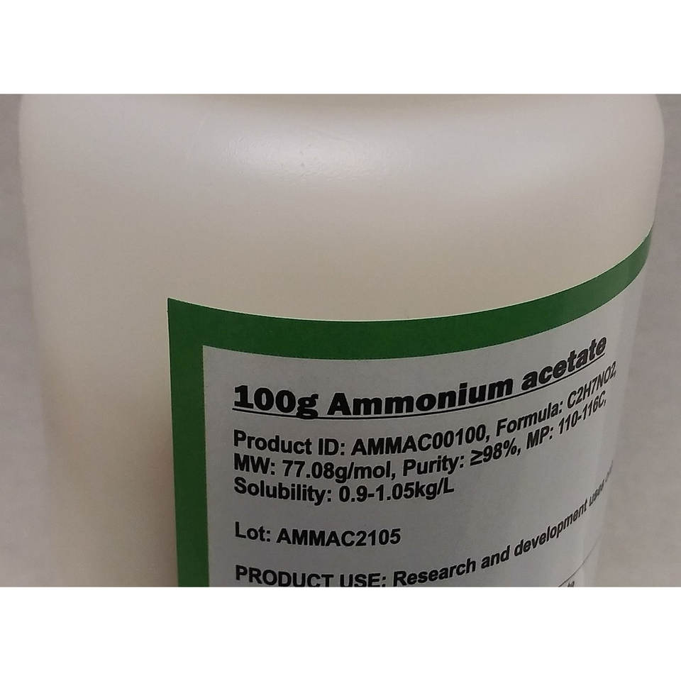 Ammonium Acetate (CAS 631-61-8) 98%+ Purity C2H7NO2 Molecular Formula Soluble up to 1.05kg/L at 0C