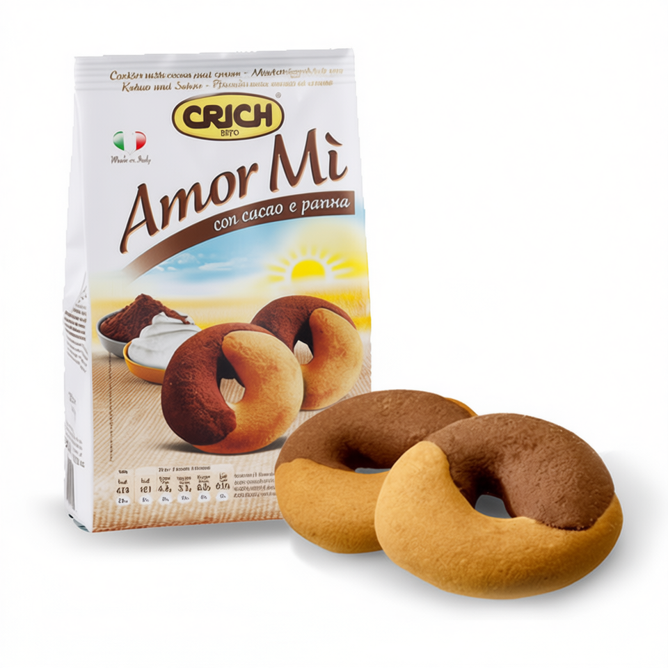 Biscotti Sandwich al Cacao Amorm di Qualità Premium, Forma ad Anello, Texture Semi-Morbida, 300g X 12 Pezzi, Gusto Dolce, Confezione in Sacchetto CRICH
