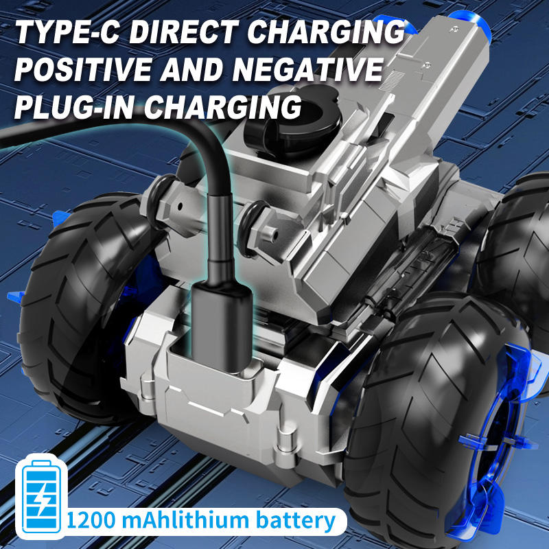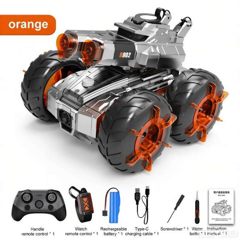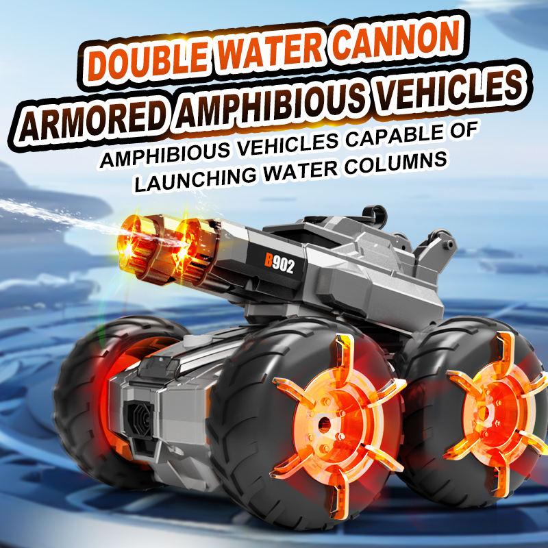 Auto Telecomandata Anfibia con Luci sulle Ruote e Doppie Pistole Spray, 360 ° Rotazione e funzione di supporto, ricaricabile tramite Type-C