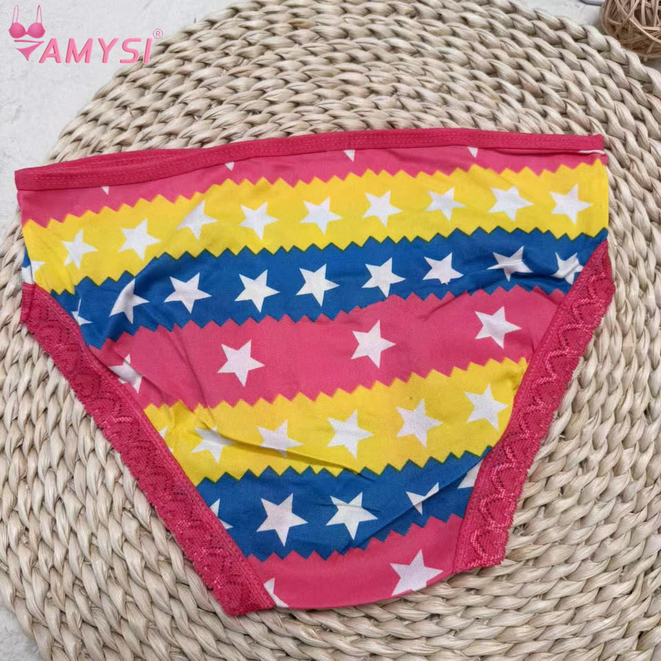 Amysi 8273# 2026 Summer New Arrival Mid-Rise Milk Silk Star Pattern Printed Kids' Thongs Teen Girl Big Size Underwear