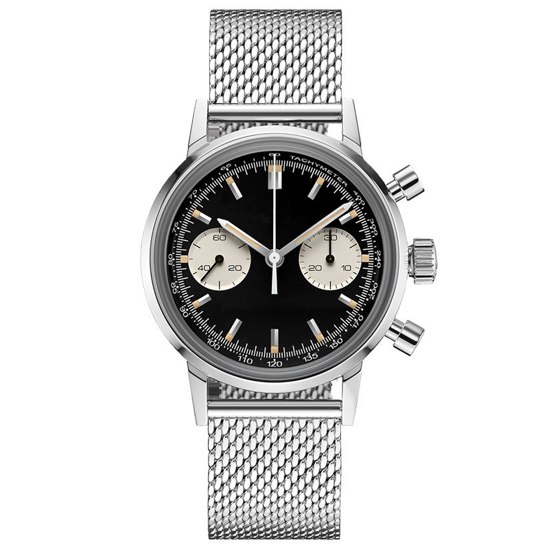 Orologi da Uomo in Pelle con Display Cronografo Analogico con Cinturino in Pelle di Vitello e Maglia Milanese