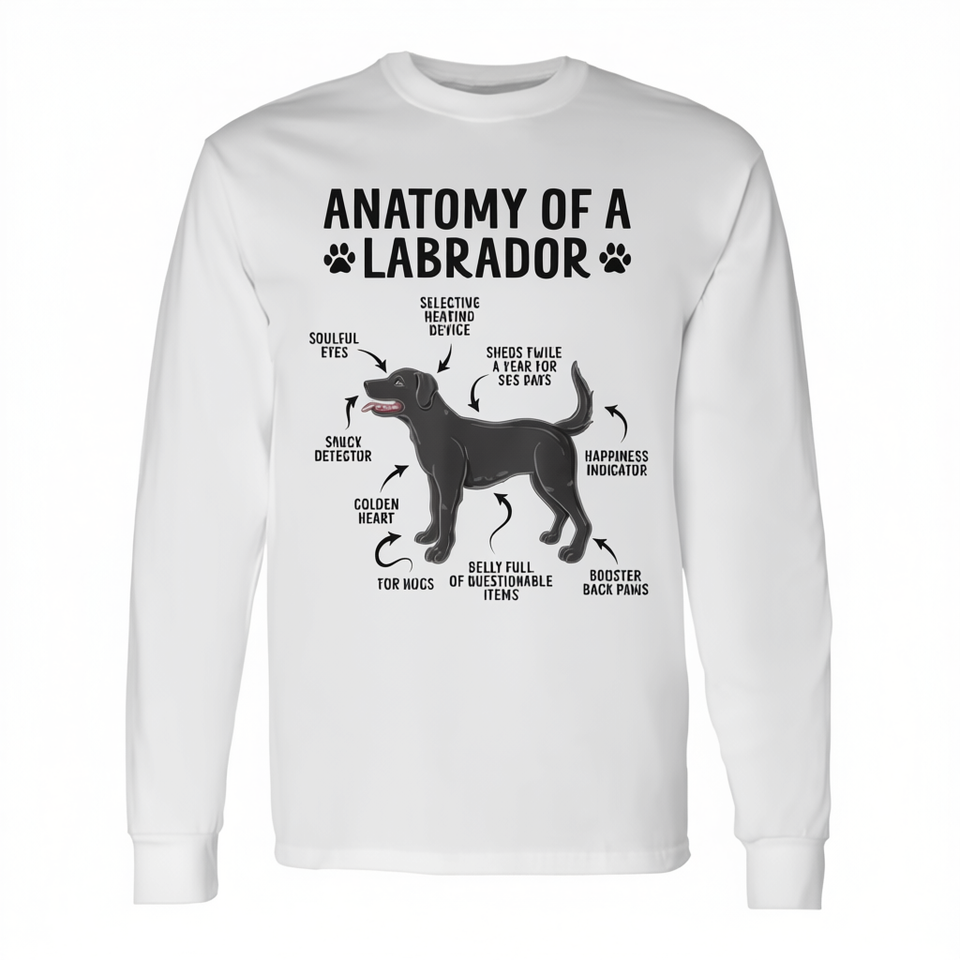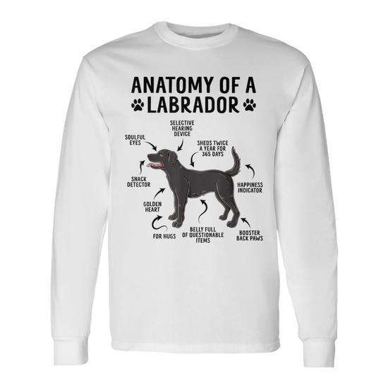 T-shirt a maniche lunghe Anatomy Of A Labrador Black Dog per gli amanti dei cani