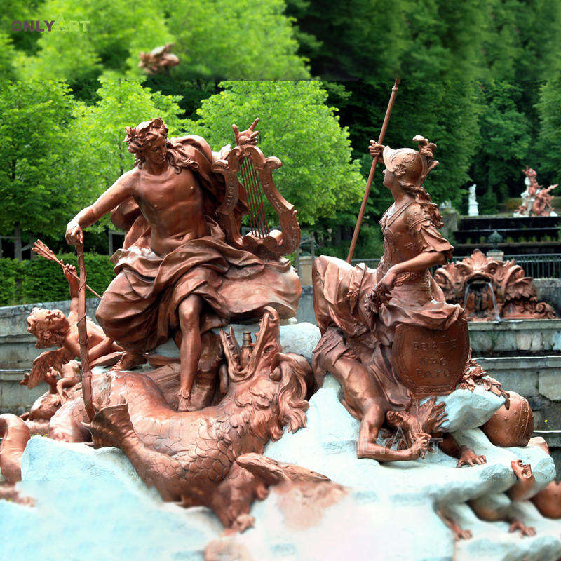 Ancient Bronze Greek and Roman God Statues Apollo Statue with Baby Angels for Seaside Decorations