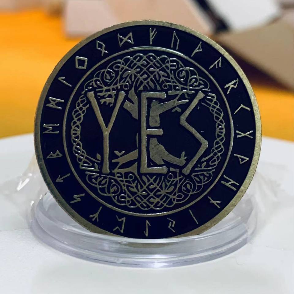 Ancient Bronze Lucky Coin 3D Relief Design Modern Traditional Gold Plated Decision-Making Tool Yes No Metal Craft Souvenir