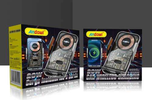 Andowl Car Wireless Charger 20W 12-24V Cyberpunk Design Fast Charging for Phone Model Q-WX660