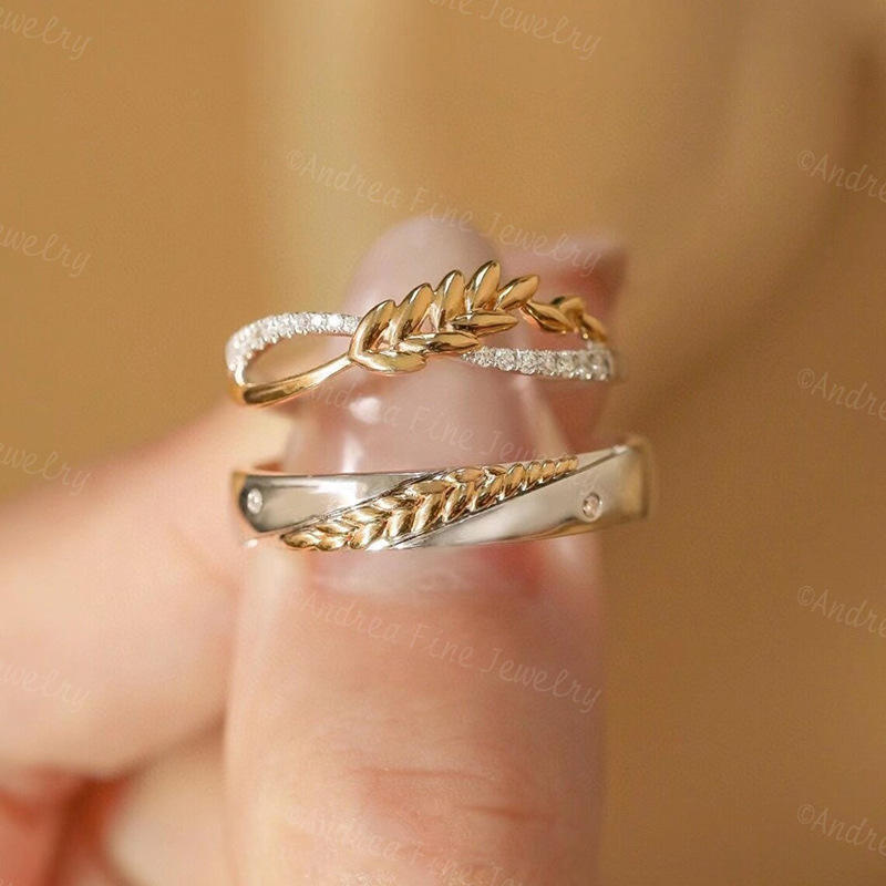 Anello Andrea Fine Jewelry con Motivo Vegetale, Zirconia Cubica, Incastonatura a Pavé, Anello Unisex alla Moda, Regalo