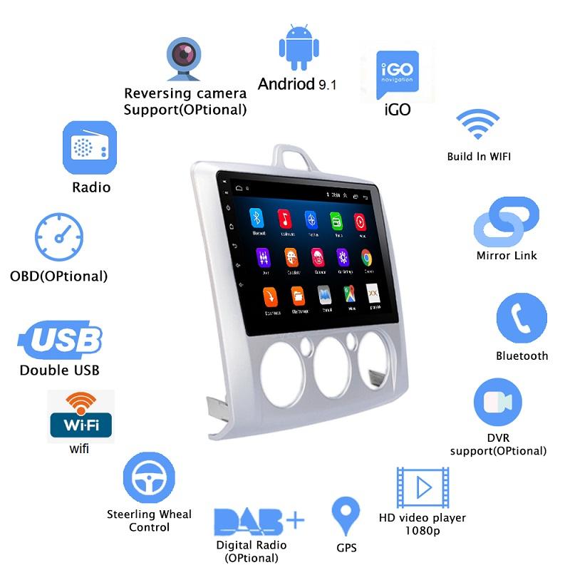 Android 9.0 Car Radio Multimedia Video Player Navigation GPS for ford Focus 2 3 Mk2/Mk3 Hatchback 2 Din 2004 2005 2006 2007
