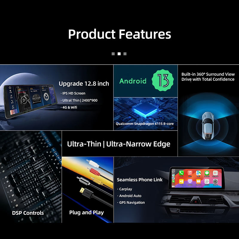 Lettore DVD Android per Auto per BMW Serie 5 F10/F18 Touchscreen All-in-One da 12.8" 2400*900, Ultra Sottile, con CarPlay, Navigazione GPS, DSP