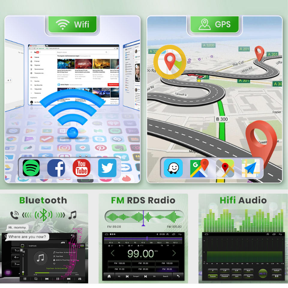 GPS, Stereo Stereo, Telecomando, DSP, CarPlay, Specchio Link, Android auto, Immagine in foto, Microfono incorporato, Schermo diviso, File Manager, Torque Pro, Hi-Res Audio, Auto Controllo del Volante, Altoparlante integrato