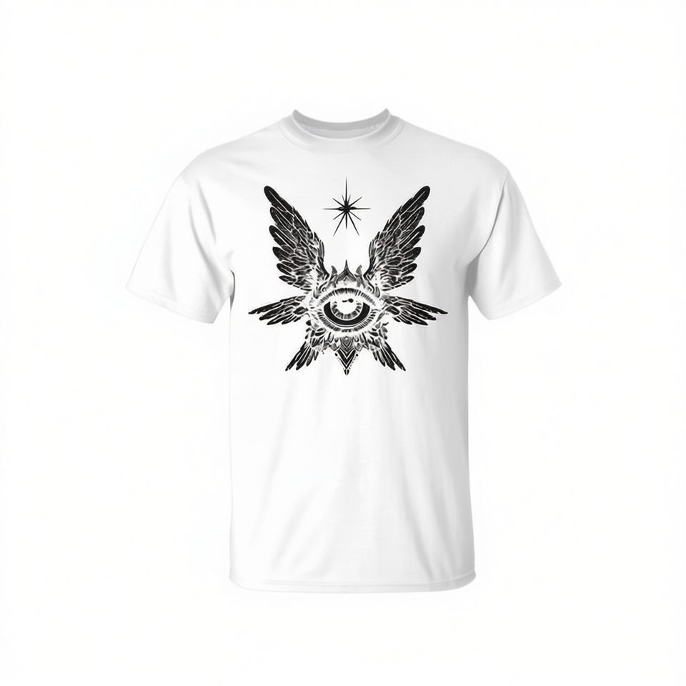T-shirt Angel Seraphim Gothic Edgy con design a forma di occhio alato, vestibilità unisex