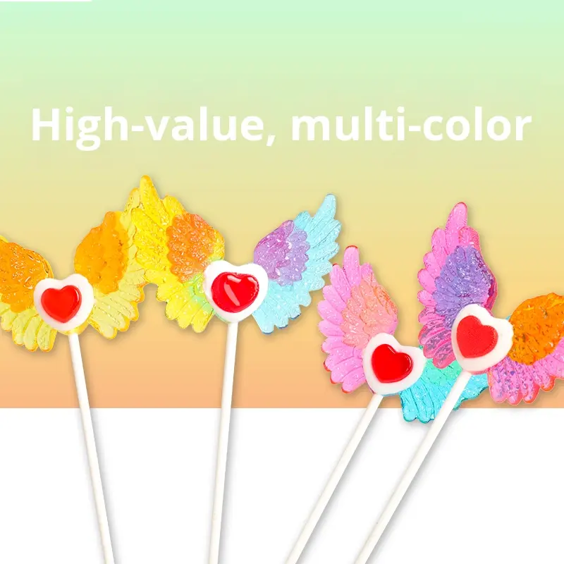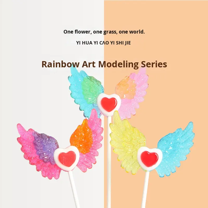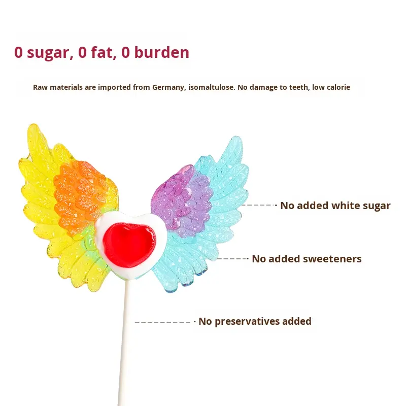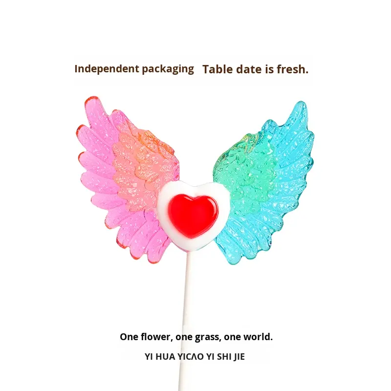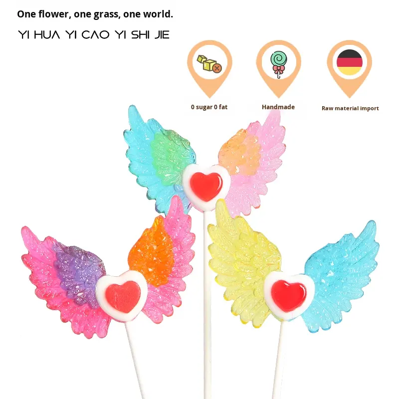 Angel Wings Coated Crystal Fruity Lollipop Bulk High-Value Handmade Creative Candy 0 Sugar 0 Fat 40g Semi-Soft