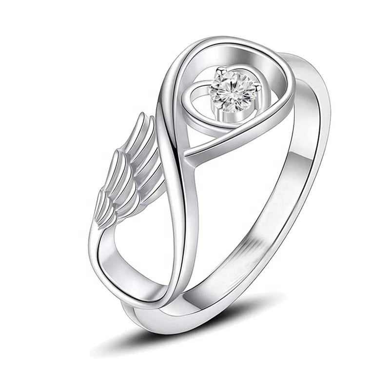 Ali d'angelo nastro galleggiante cuore anello di diamanti per commemora la persona amata cremazione cenere titolare urna funebre gioielli ricordo