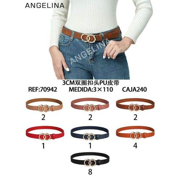 Cintura in pelle PU Angelina con doppia fibbia da 3 cm per donna, cintura alla moda, lunghezza 110 cm, colori marrone, rosso, nero, blu, arancione