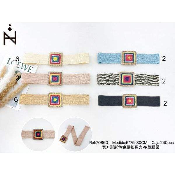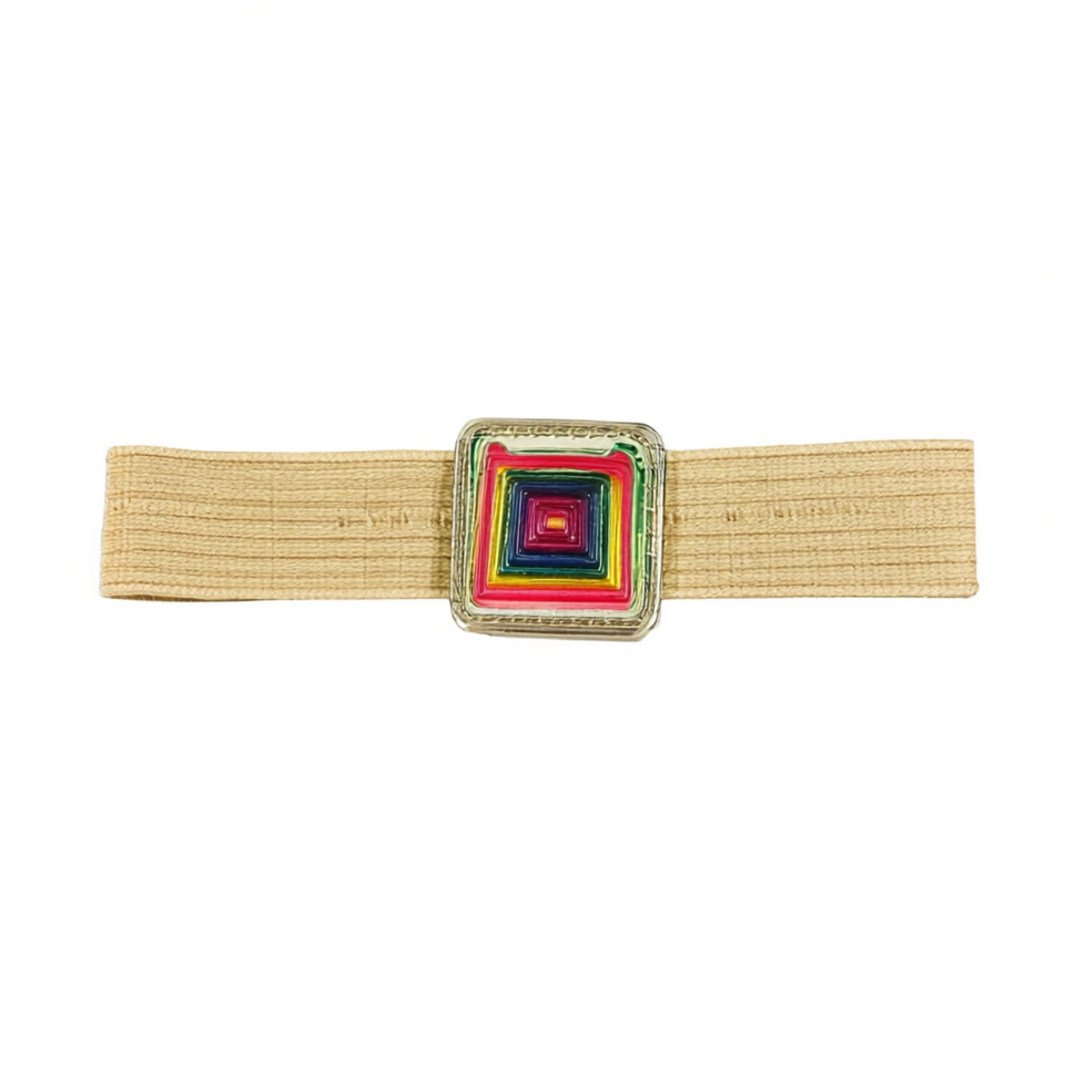 Cintura Elastica Angelina in PP Larga 5Cm con Fibbia Quadrata in Metallo, Stile Bohémien, Accessorio Moda per Donne