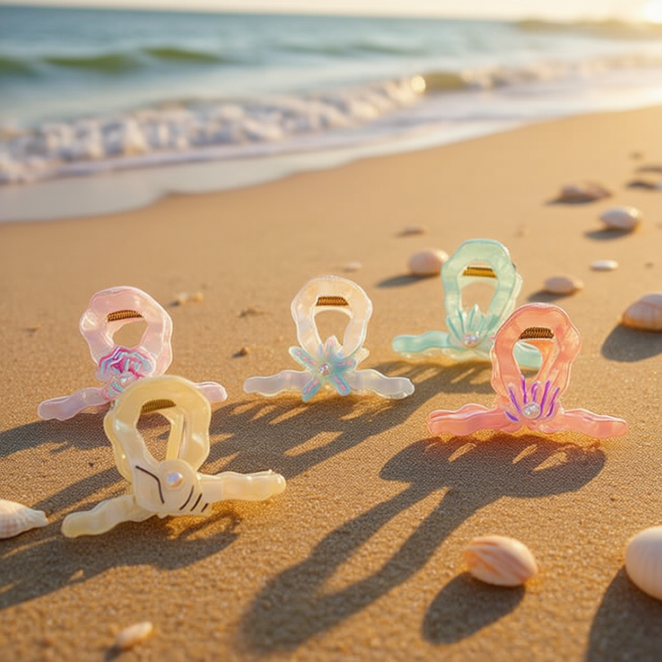 Fermacapelli Angelina 8 cm in resina a forma di conchiglia e stella marina per donna, uso quotidiano, stile dolce.