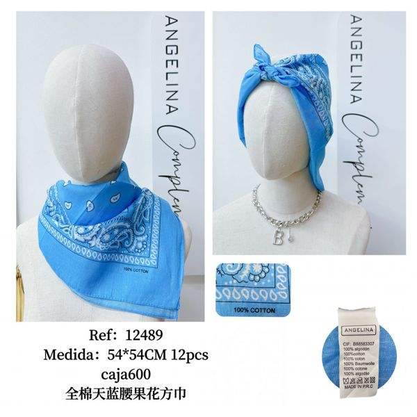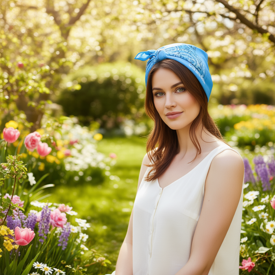 Sciarpa quadrata Angelina Complete Cotton con motivo floreale blu cielo 54x54 cm Copricapo alla moda per donna