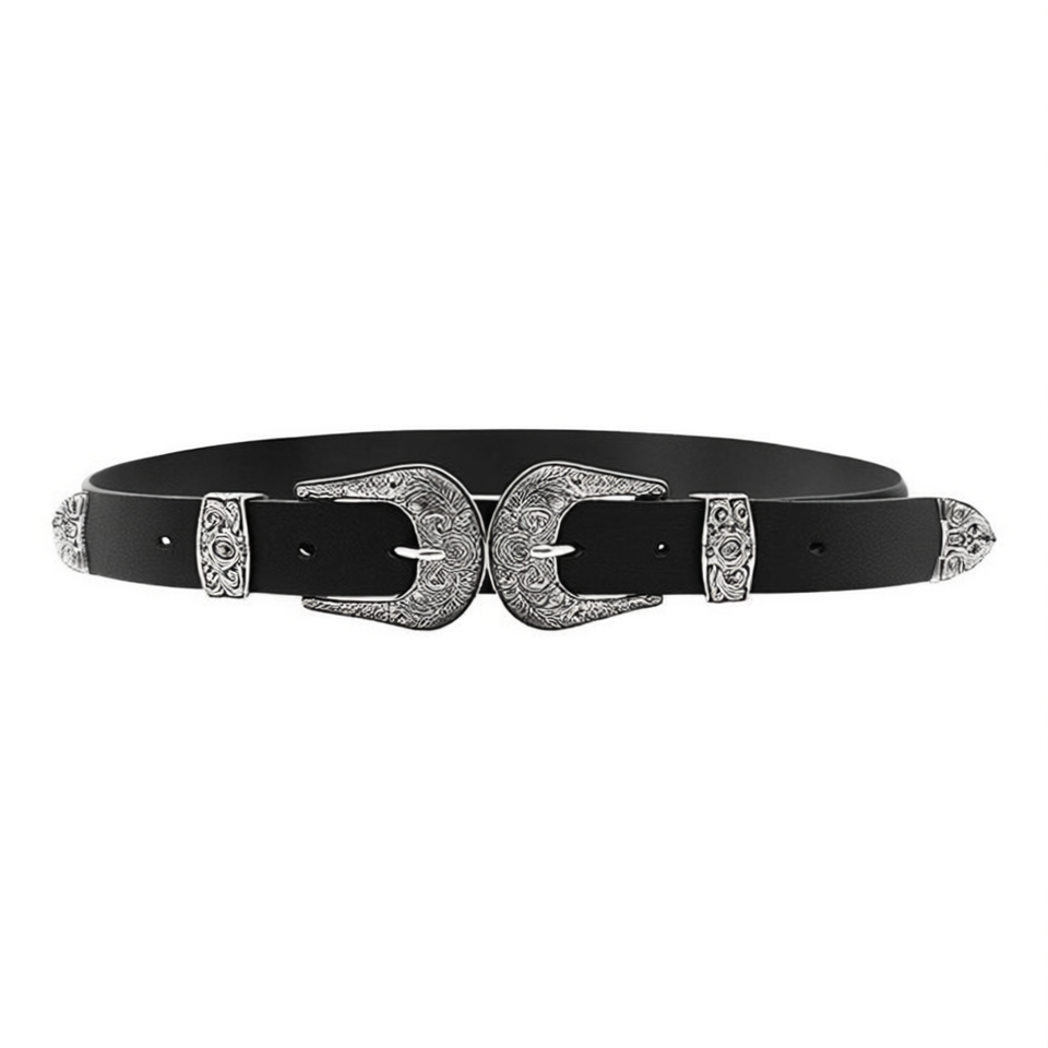 Angelina Genuine Leather Belt 100cm Double Buckle Western Style Fashion Accessory