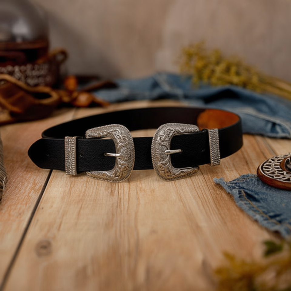 Angelina Genuine Leather Belt 3.5x100cm Double Buckle Western Style Women Fashion Accessory