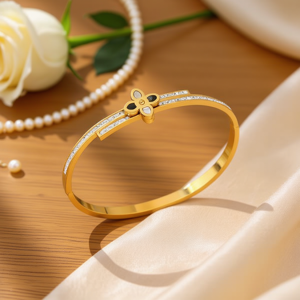Bracciale Angelina in Acciaio Inossidabile Placcato Oro, Design Floreale con Cristalli e Strass, Gioiello Trendy da Donna