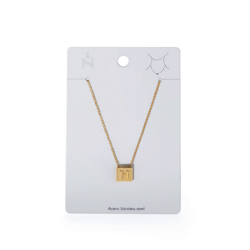 Collana con Ciondolo Lettera M Angelina in Acciaio Inossidabile Placcato Oro, Gioiello Unisex Classico alla Moda, Regalo