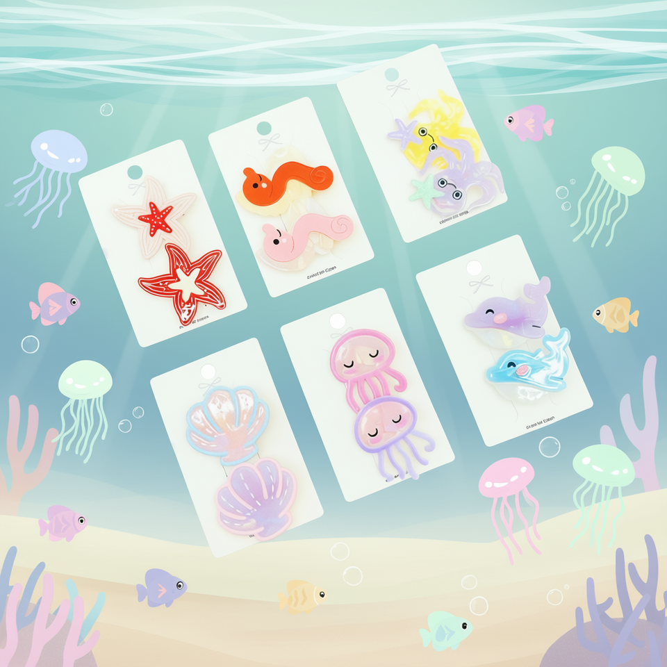 Fermagli per capelli Angelina Ocean Series, 1200 pezzi, assortiti con creature marine, per bambine e ragazze