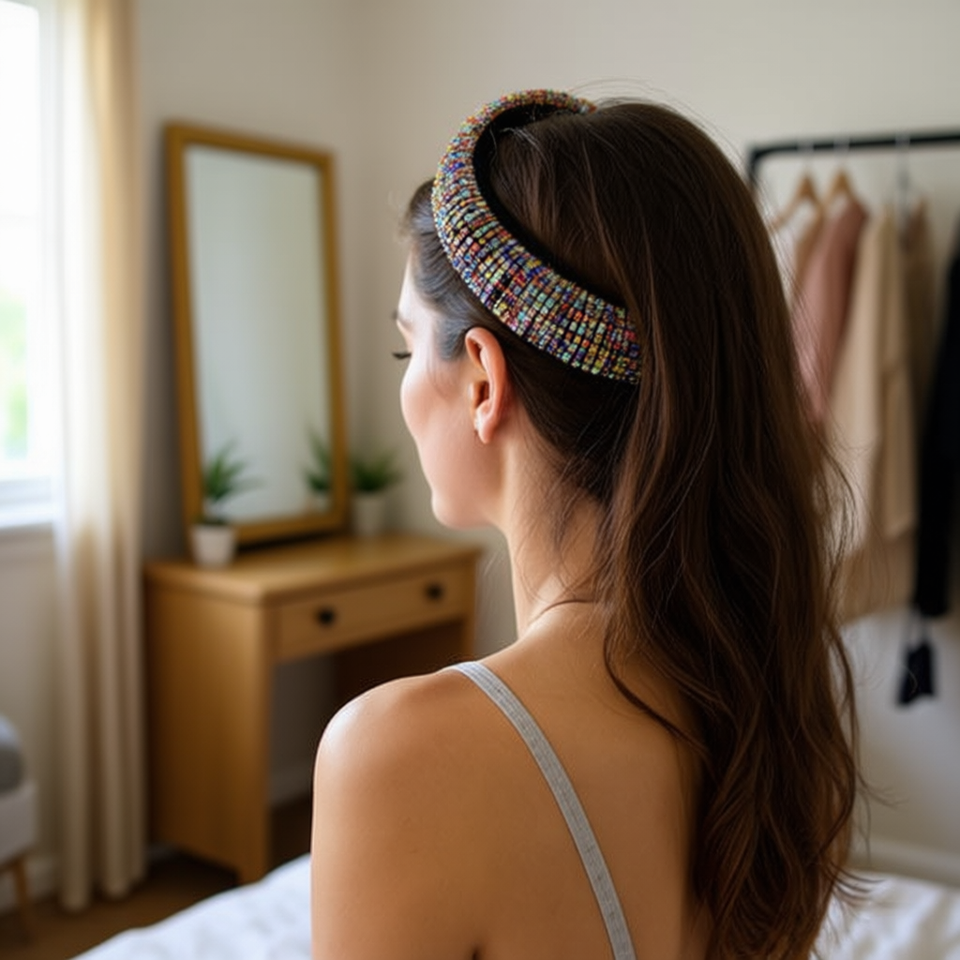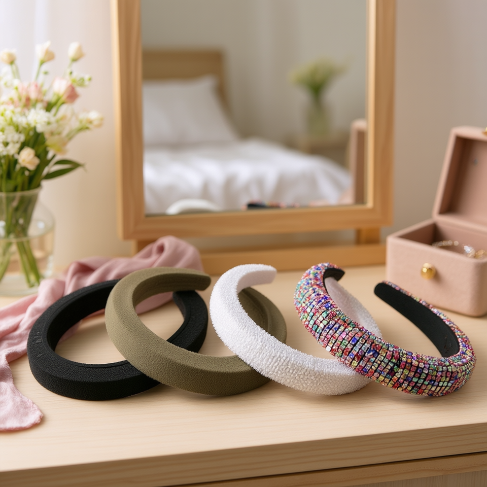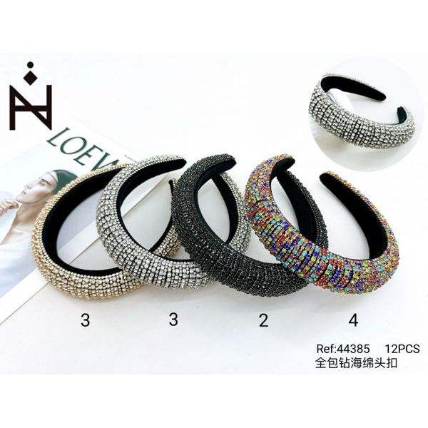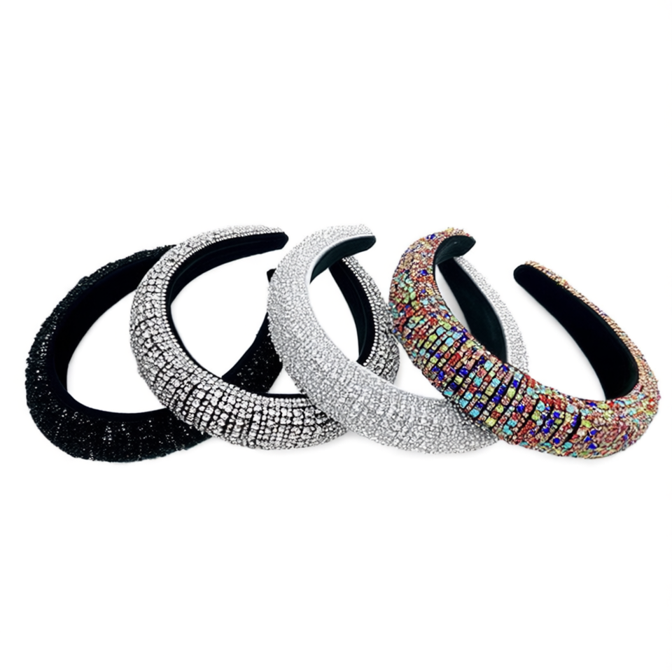 Angelina Rhinestone Foam Headband Women Hair Accessories Black Silver Multicolor Elegant Daily Use High Quality 12Pcs